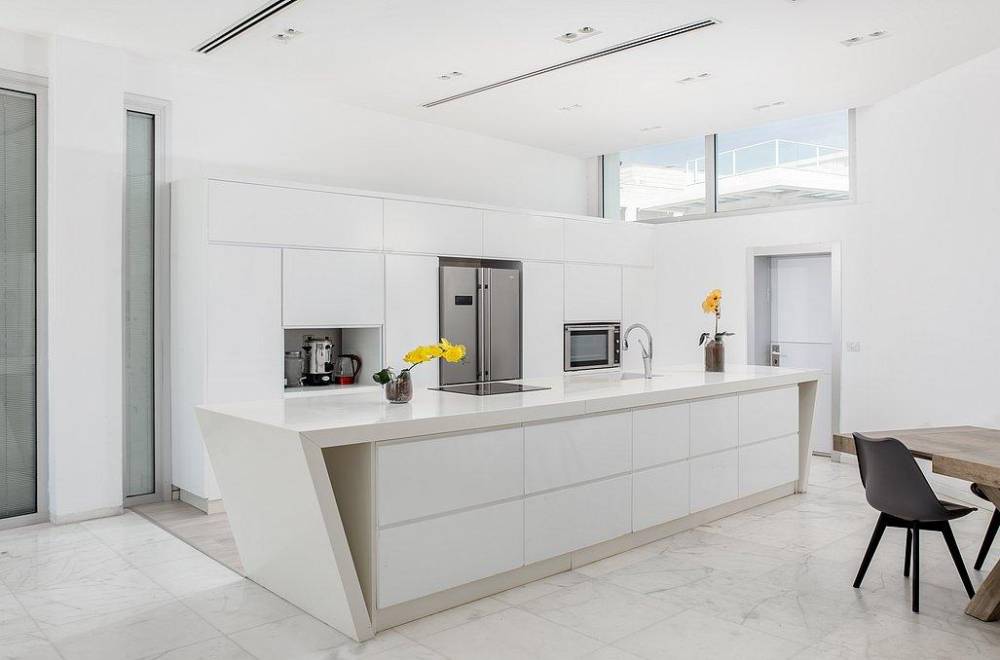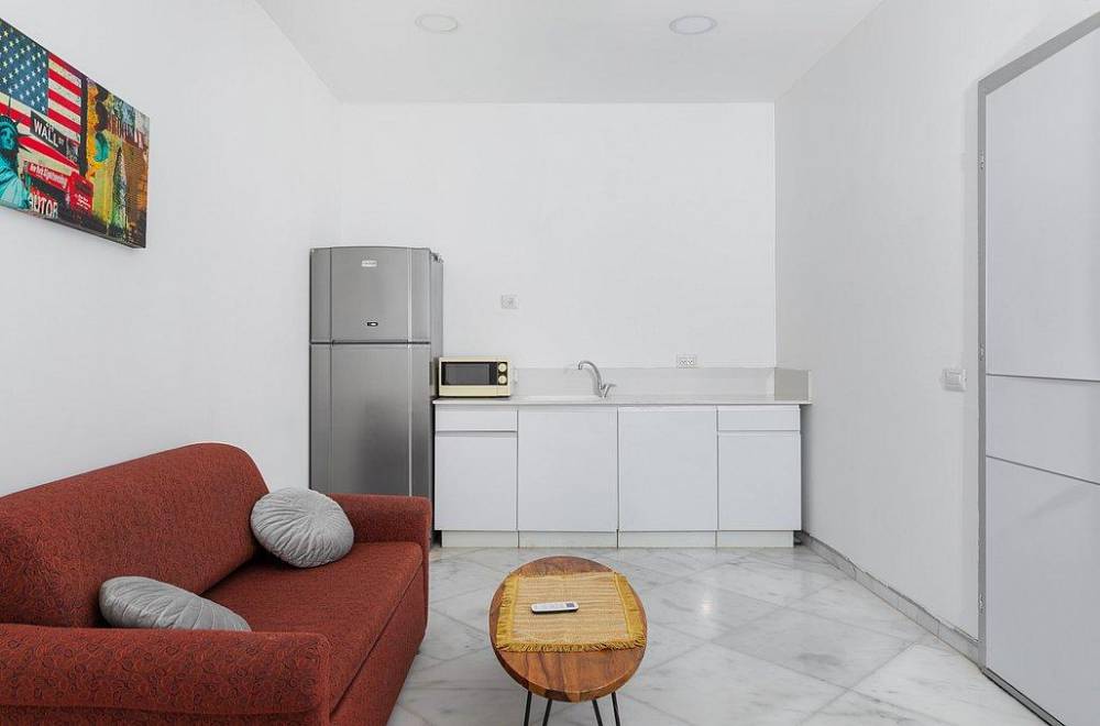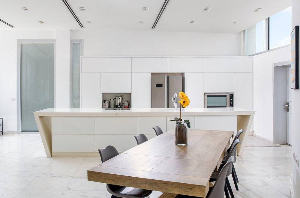מטבח מאובזר קומפלט עם 2 מקררים, כיריים חשמליות, קומקום חשמלי, מדיח כלים, תנור, מיקרוגל, מכונת קפה, כלי אוכל והגשה