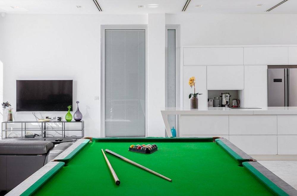 חדר פנאי עם משחקי שולחן, טלוויזיה וסוני פלייסטיישן
