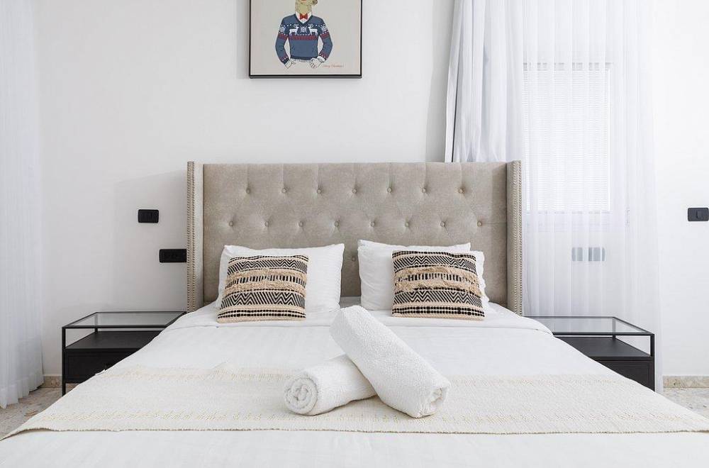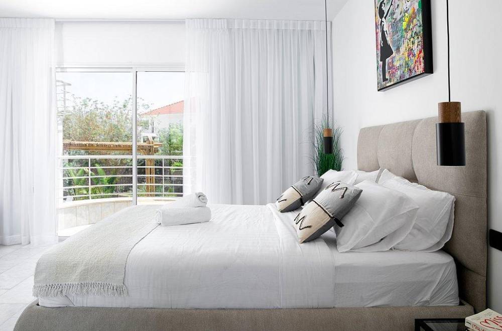 כל חדרי השינה מאובזרים במיטה זוגית, מיזוג אוויר, טלוויזיה עם חיבור לערוצי YES, שידות וארונות אחסון