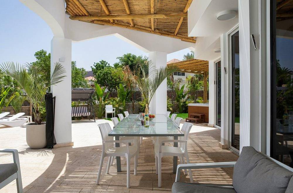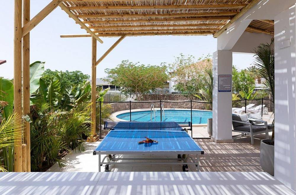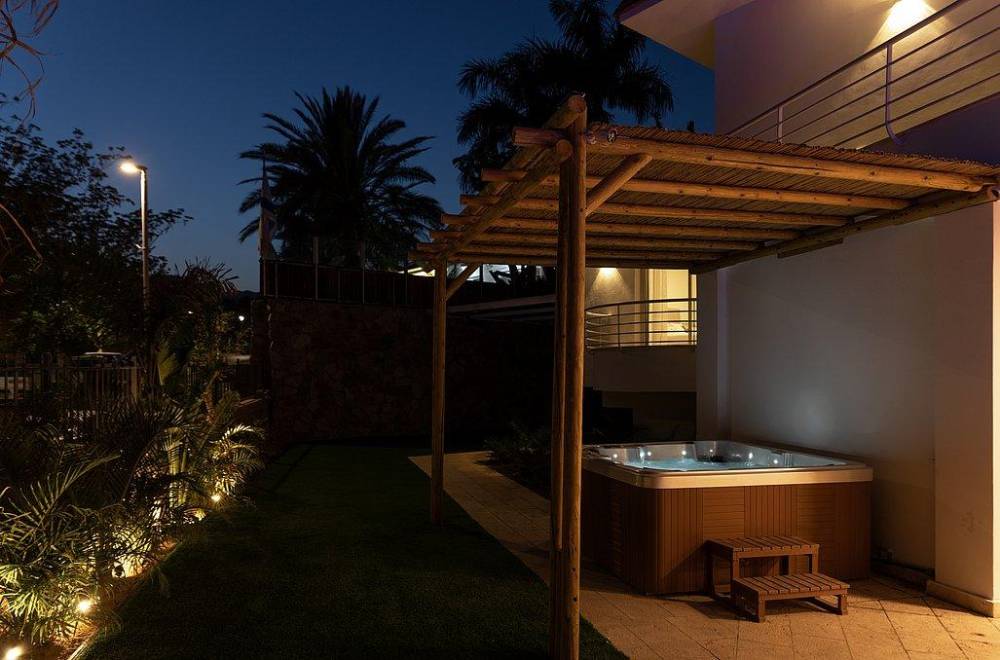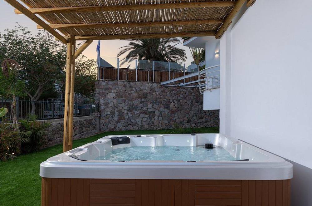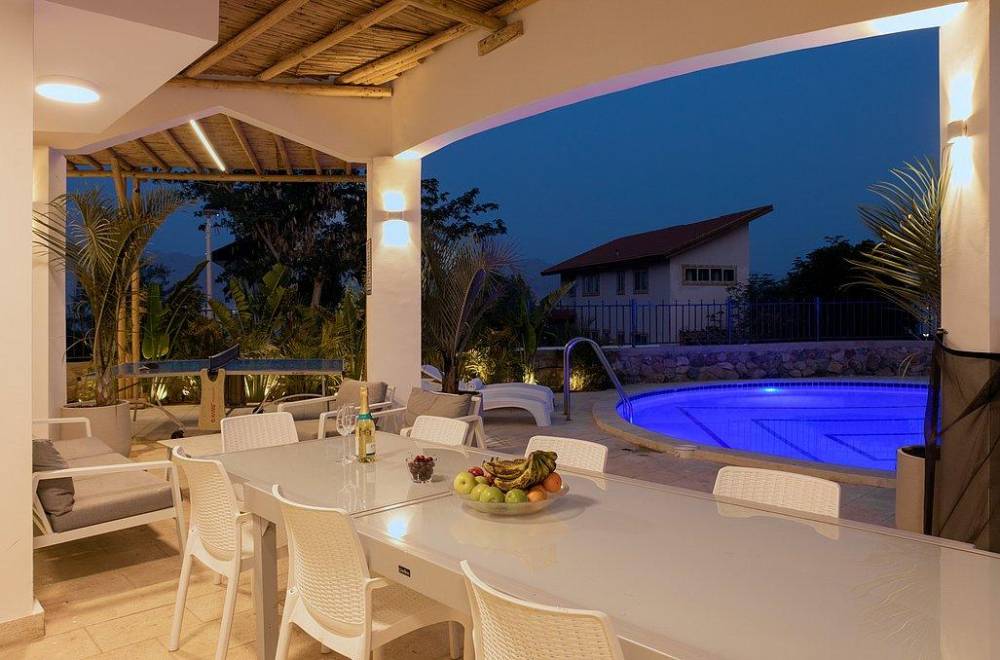 במתחם החוץ תהנו מבריכת שחייה מחוממת ומקורה צלולה, ג'קוזי ספא גדול, עמדת מנגל מקצועית עם מטבח מאובזר ושולחן פינג פונג