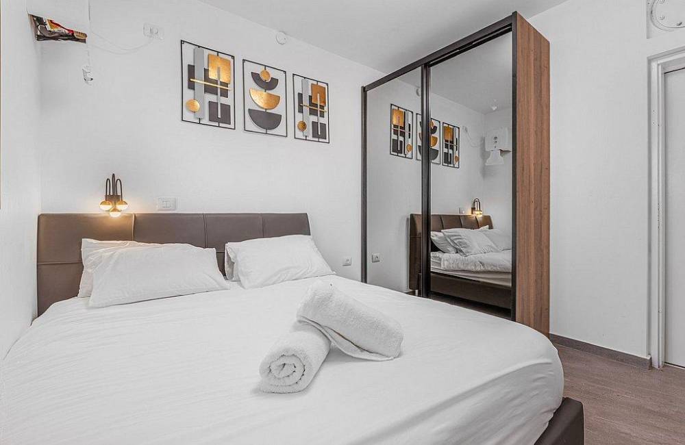 4 חדרי שינה מרווחים, בכל אחד: מיטה זוגית, מזגן, טלוויזיה וארון בגדים