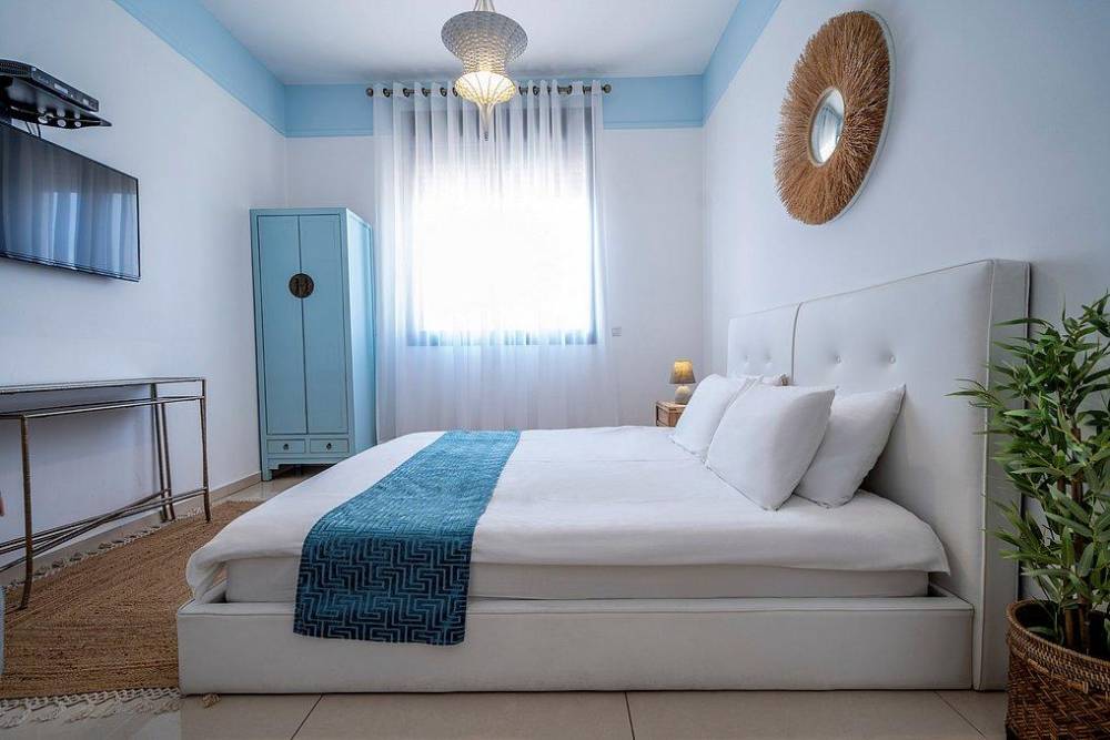 בכל חדרי השינה מיטות זוגיות, ארונות בגדים, טלוויזיה ומיזוג אוויר לכל חדר בנפרד.