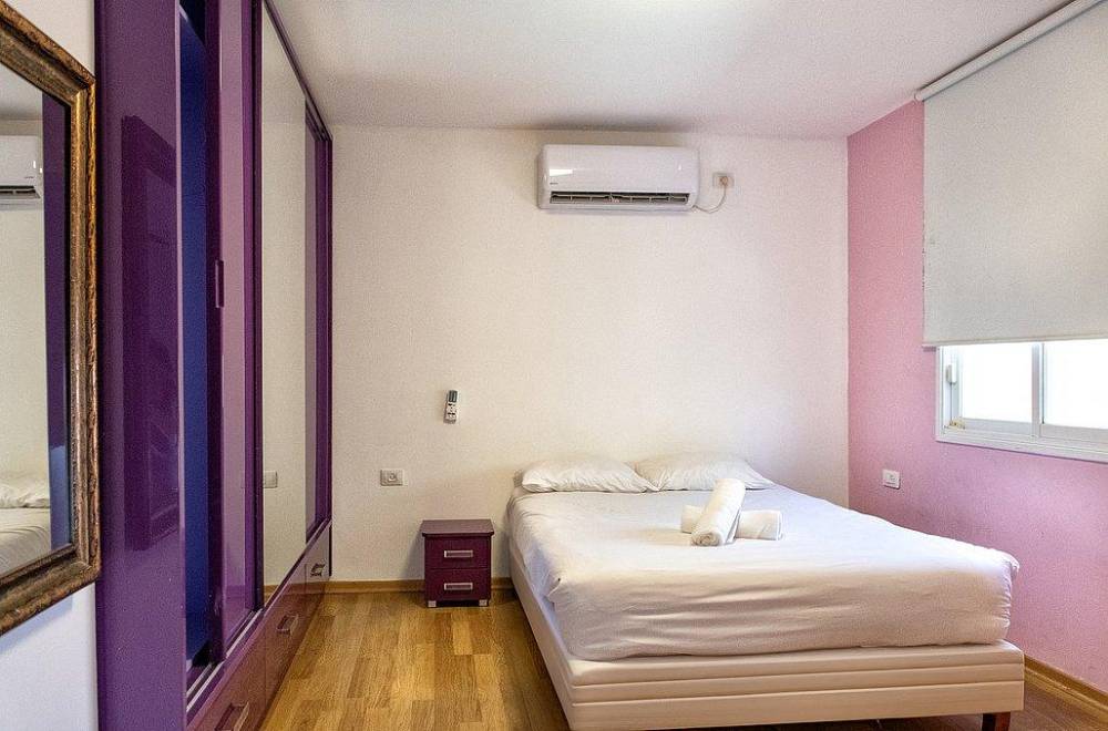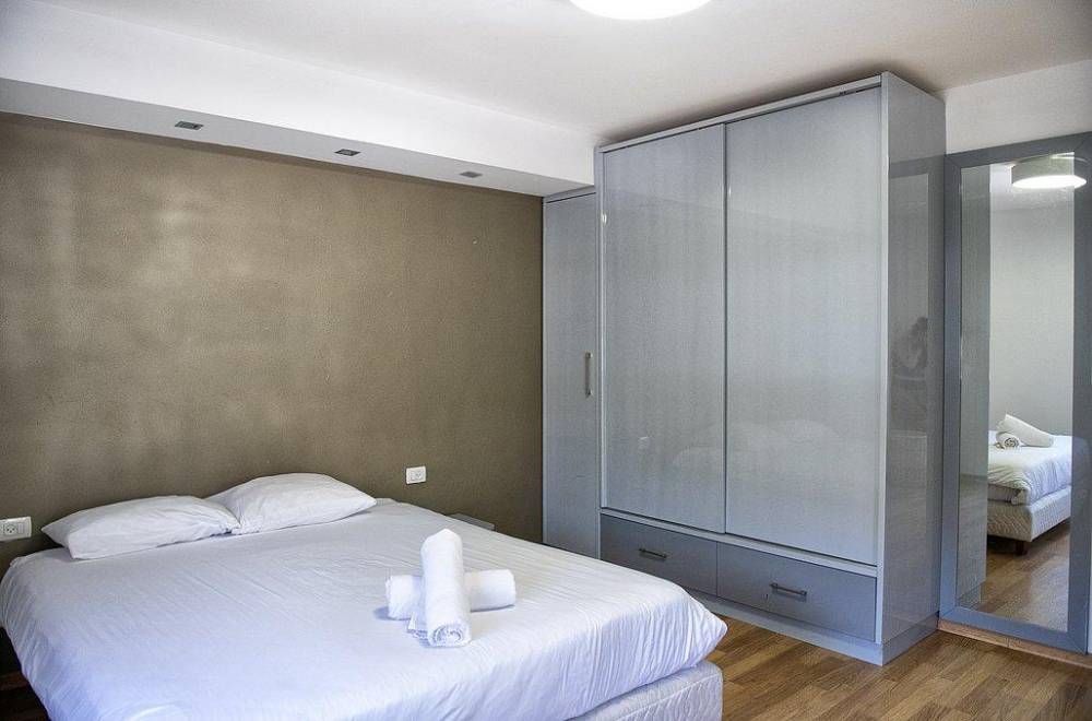 אבזור החדרים: מיטה זוגית מוצעת ונעימה, מיזוג אוויר, ארון