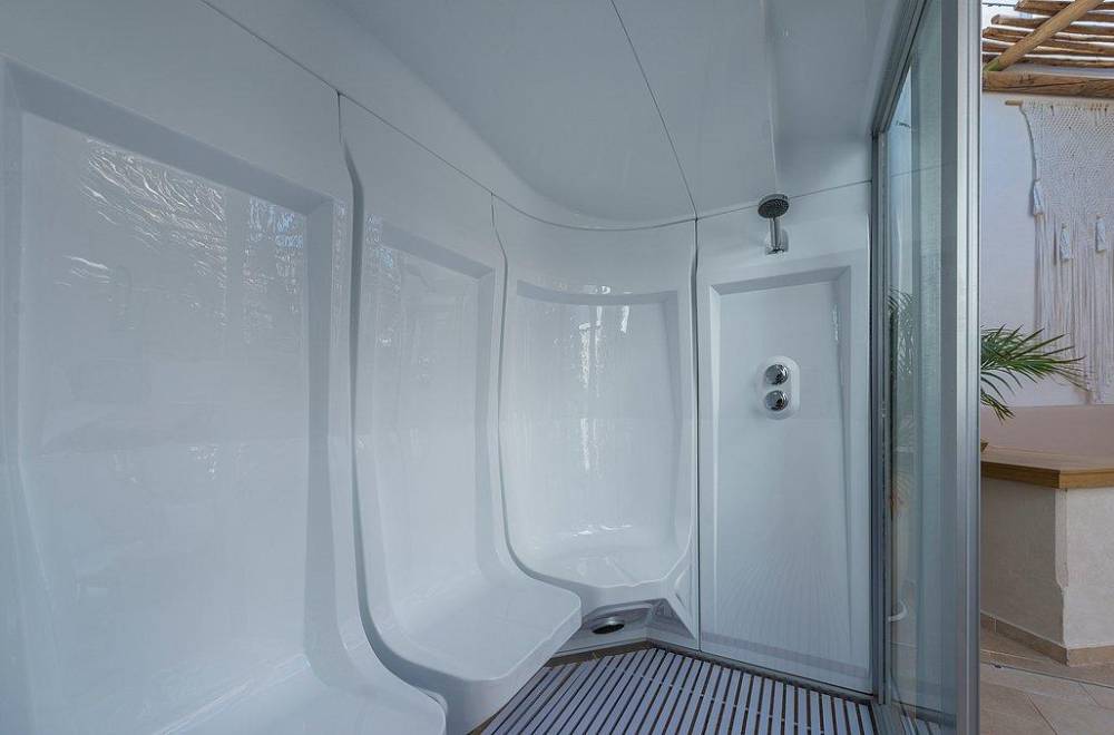 לכל סוויטה חדר רחצה עם מקלחון זוגי הכולל 2 ראשי מקלחת מפנקים ושירותים