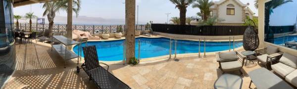 הוילה מונה 6 חדרי שינה, מטבח מאובזר, סלון גדול ופינת אוכל. מתחם חיצוני משגע עם בריכת שחייה מחוממת מול נופה של מפרץ אילת, פינת מנגל ועוד...