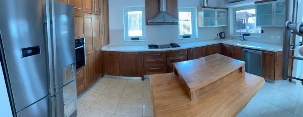 מטבח מאובזר המכיל: כיריים גז, מנדף, קומקום חשמלי, מדיח כלים, 2 כיורים, כלי הגשה ובישול
