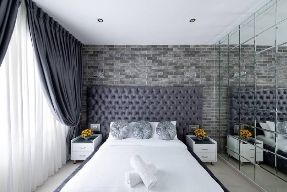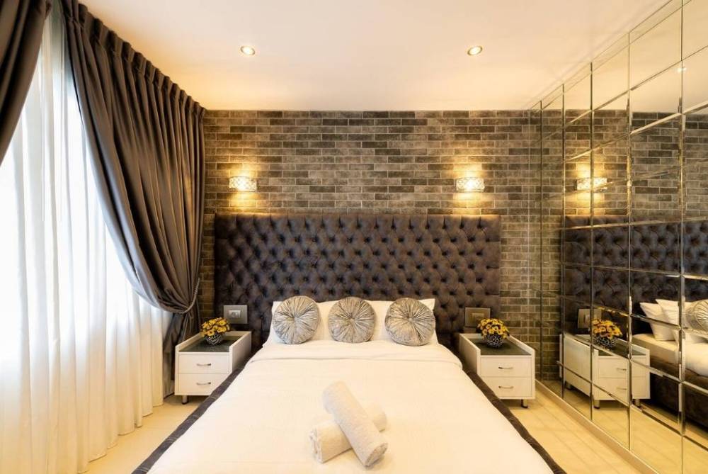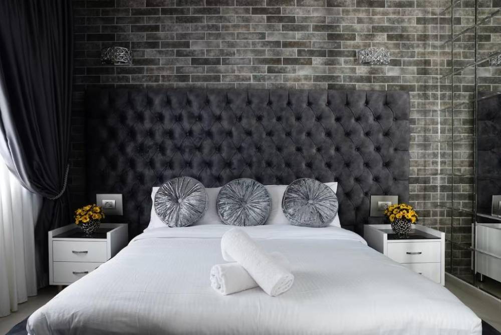 חדר שינה 2 - Armani Suite - מיטה זוגית, טלוויזיה בגודל 70 אינץ', מיזוג אוויר, שידות אחסון וחדר רחצה פרטי עם ג'קוזי מפנק
