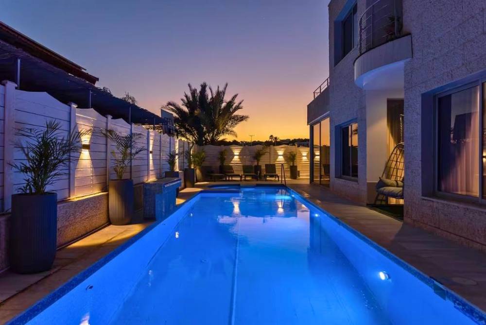 הוילה כוללת מגוון אטרקציות כגון בריכה חצי אולימפית מחוממת עם ג'קוזי, סאונה, נוף עוצר נשימה אל הים, מגוון חצרות עם פינות ישיבה, עמדת מנגל גז מקצועית ועוד..