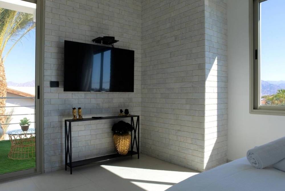 חדר שינה 5 - סוויטה נשיאותית - מיטה זוגית, טלוויזיה בגודל 70 אינץ', מיזוג אוויר ושידות אחסון