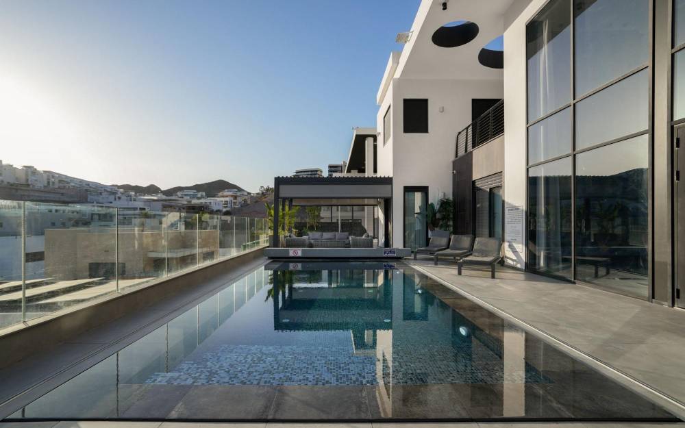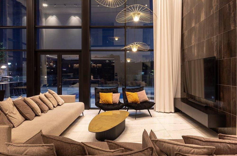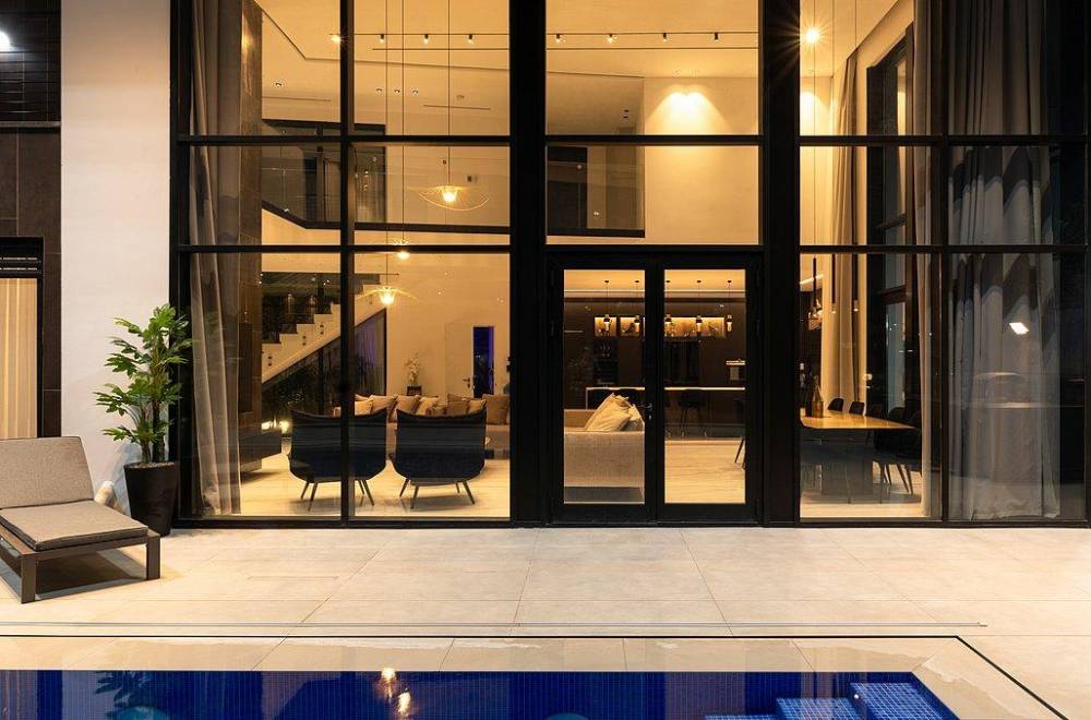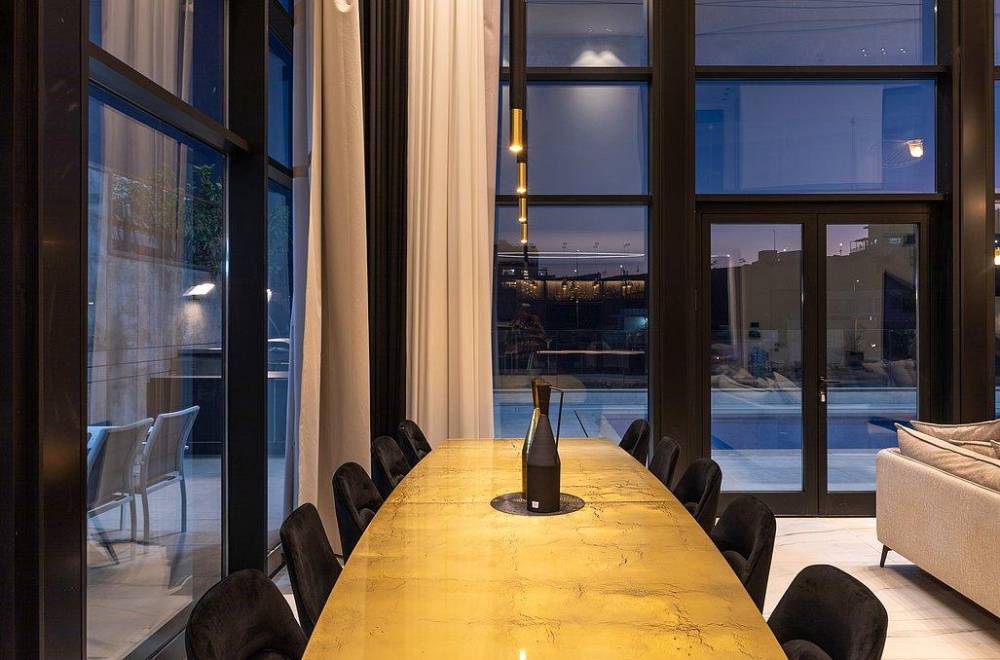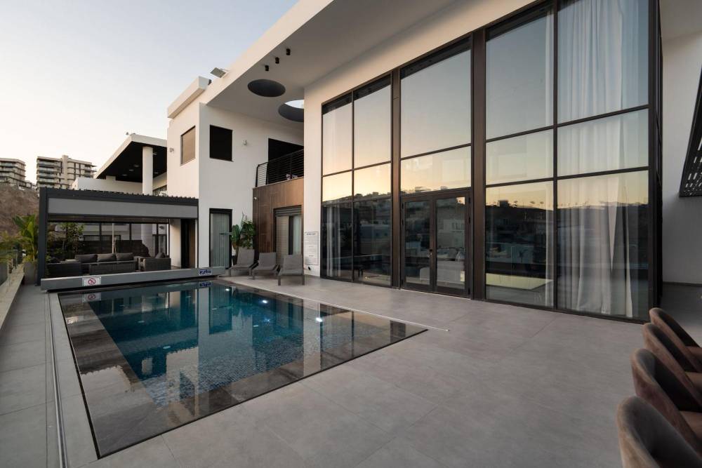 בעלת עיצוב חדשני, קיר מסך ענק המתפרס לאורך כל הוילה עם המוצרים הטובים בשוק.