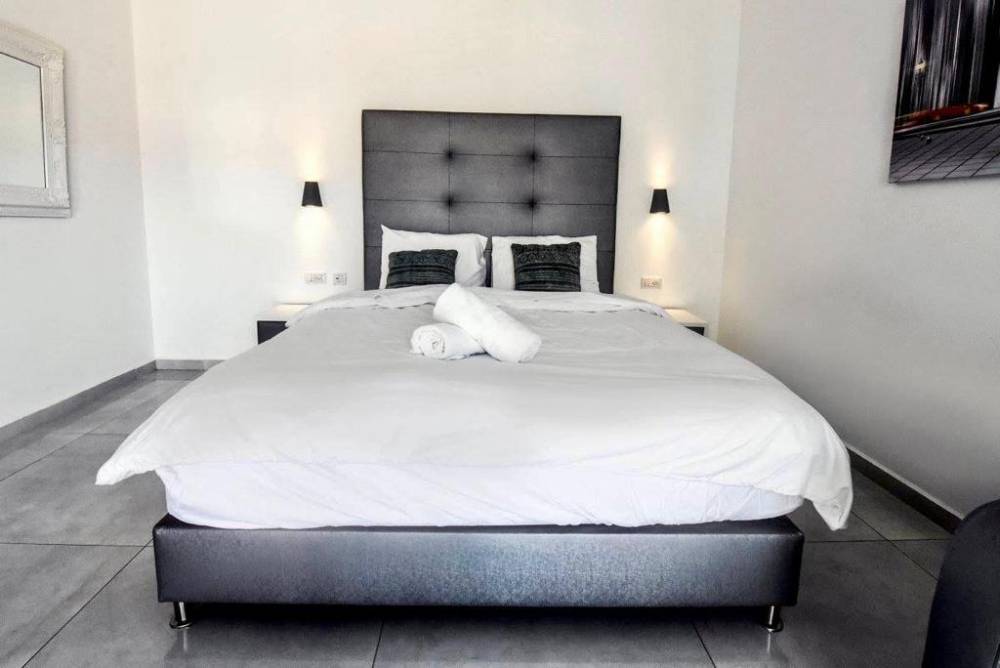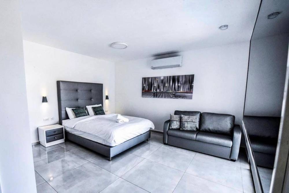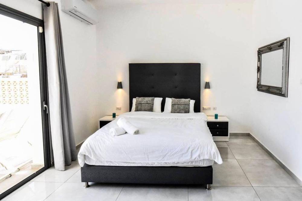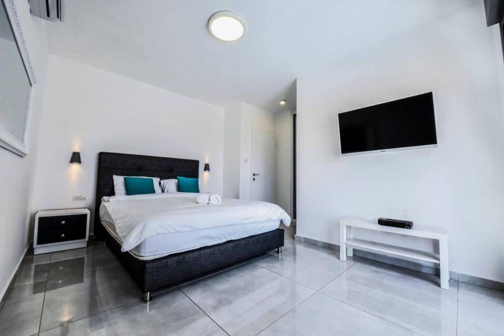 אבזור החדרים בוילה: מזגן, טלוויזיה, מיטה זוגית ושידות אחסון חדר רחצה משותף