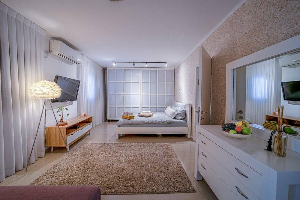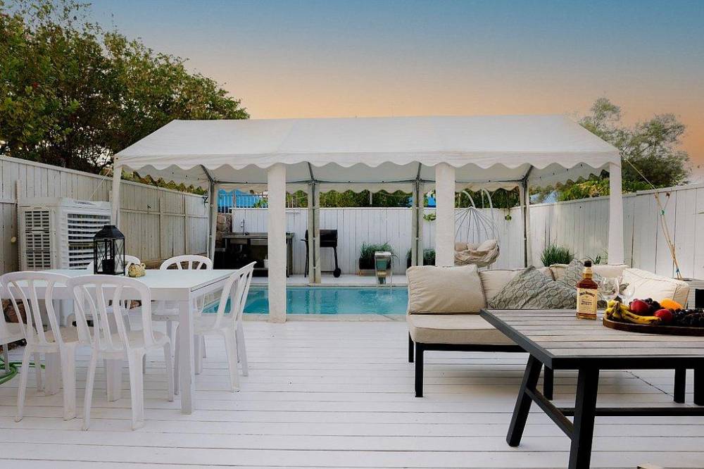 התארחנו 5 מבוגרים ושלושה ילדים. עם אישה מבוגרת (מעל 80) ותינוקת בת שנתיים וחצי. המקום מתוחזק נקי מזגנים עובדים, מטבח מאובזר, שכונה שקטה יש גן שעשועים קרוב והמארחת הייתה נעימה וזמינה. עם זאת, הרגיש צפוף, בעיקר איזור הסלון והחצר. הבריכה הייתה קטנה ממה שחשבנו, לא היה צילייה בחצר (הבריכה מקורה) והיה קשה לשהות שם. בסהכ המקום חמוד, אך הרגשנו ששילמנו מחיר מופקע ביחס לתמורה