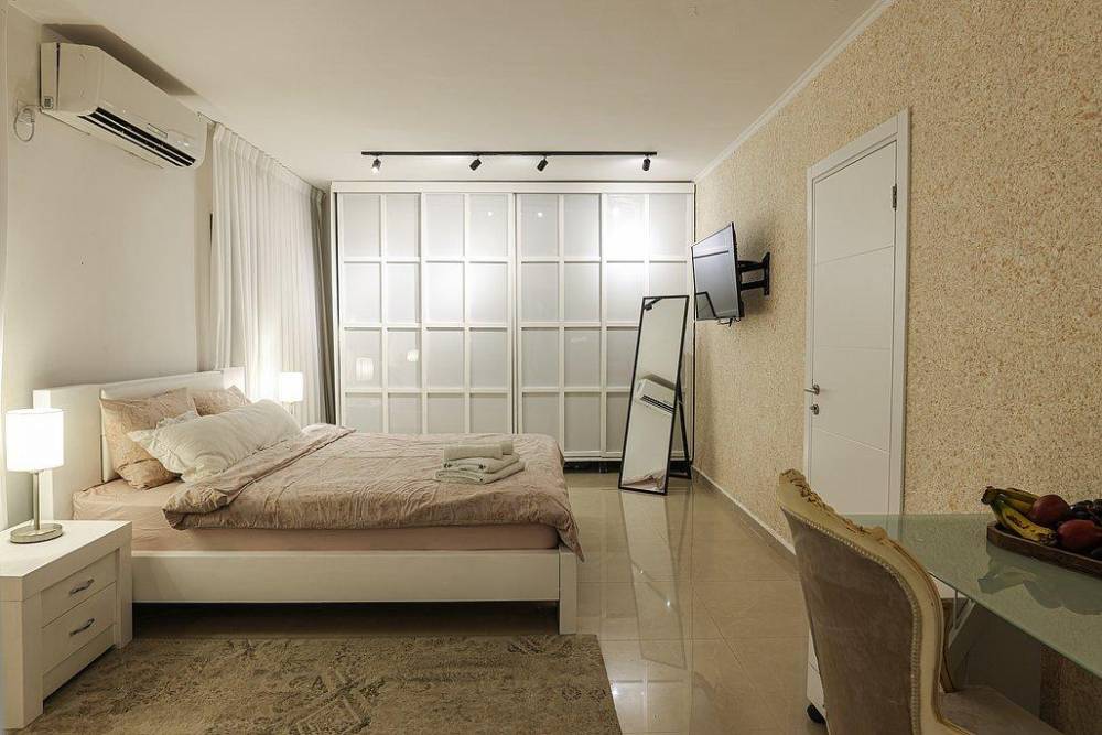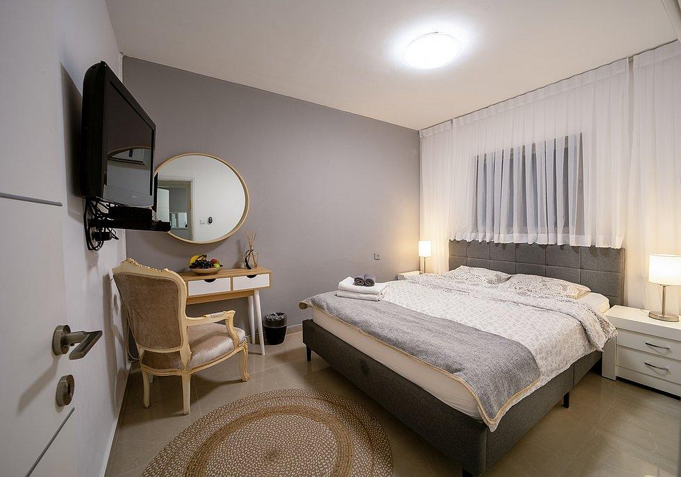 4 חדרי שינה המאובזרים במיטה זוגית, טלוויזיה, מסך LCD ושידה