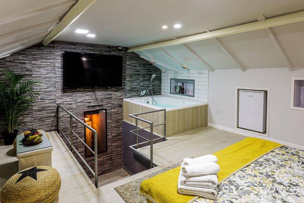 סוויטה אחת עם ג'קוזי גדול. בסוויטה השניה ספה נפתחת.