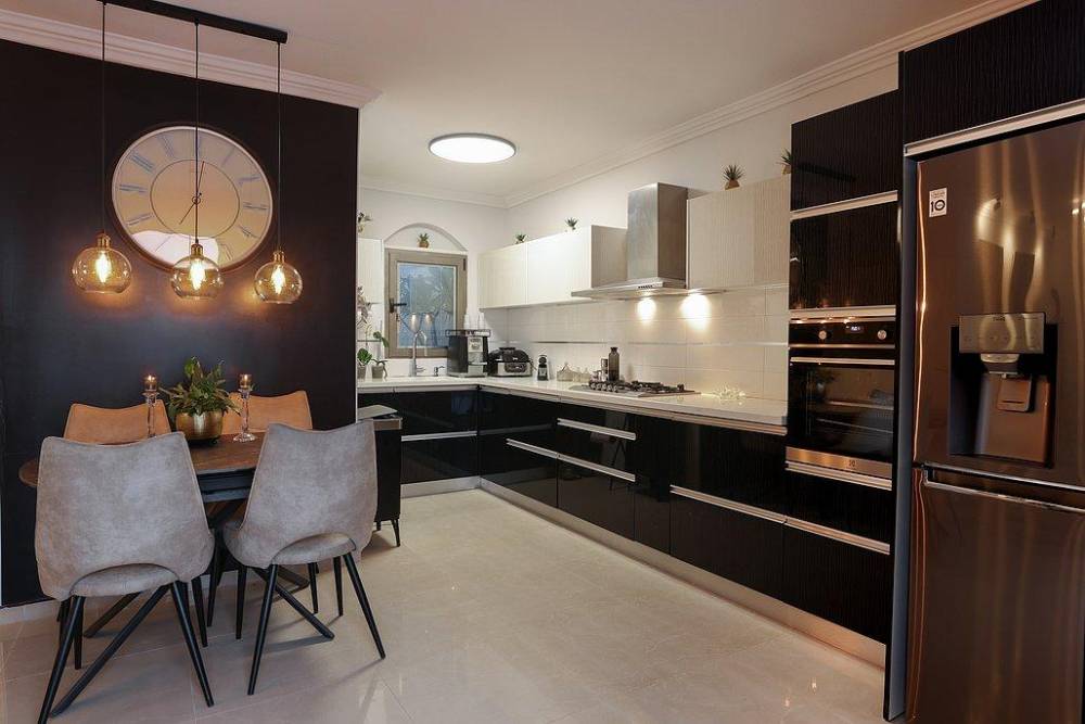 פינת אוכל גדולה עם אופציה להוספת שולחן מתקפל וכסאות.