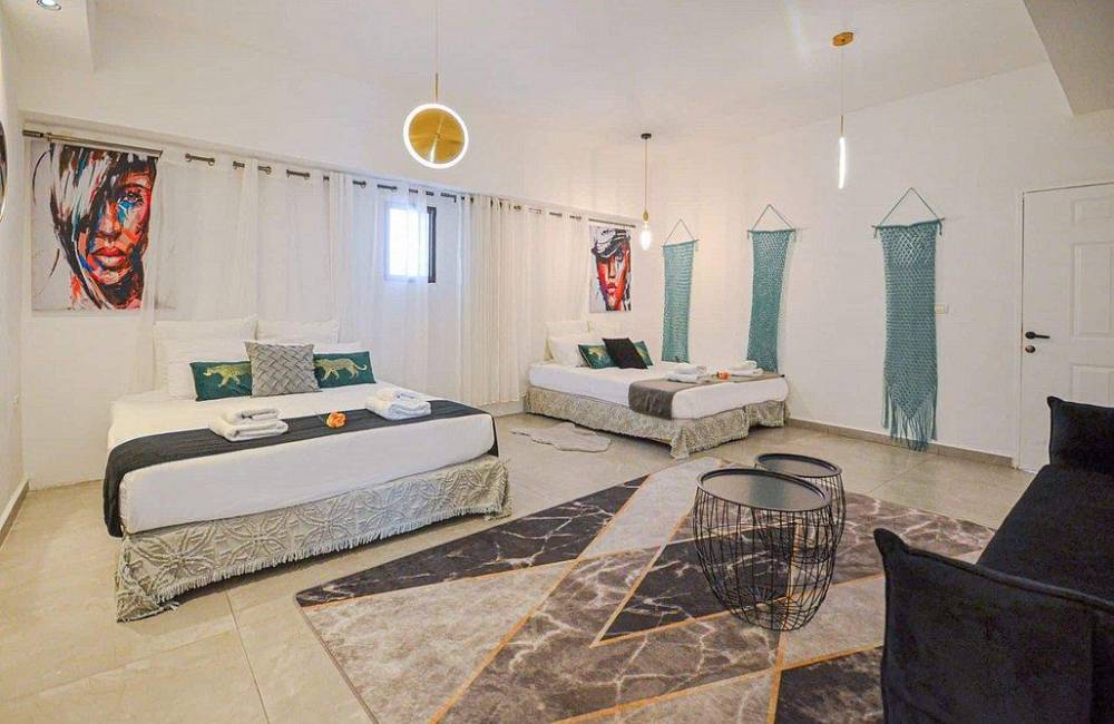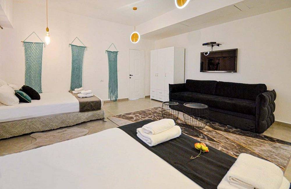חדר שינה 2: כ-2 מיטות זוגיות, ספה נפתחת, מסך ציה שידה, מזגן