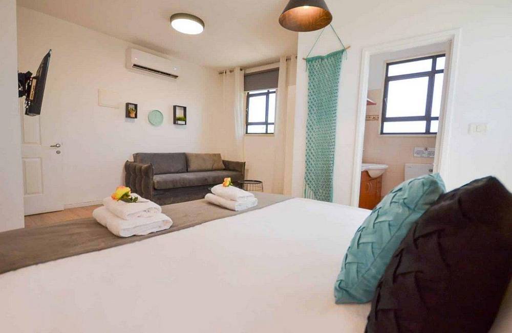 חדר שינה 3: מיטה זוגית, ספה נפתחת, מזגן, מסך צפייה שידה