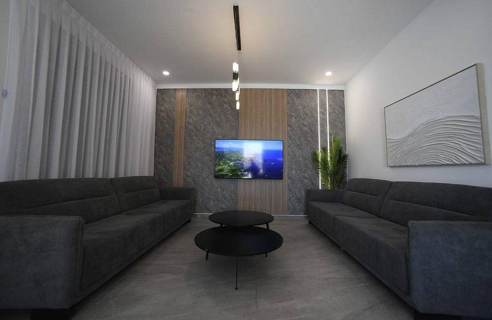 סלון + מסך LCD בגודל 72 אינץ עם חיבור ל-YES