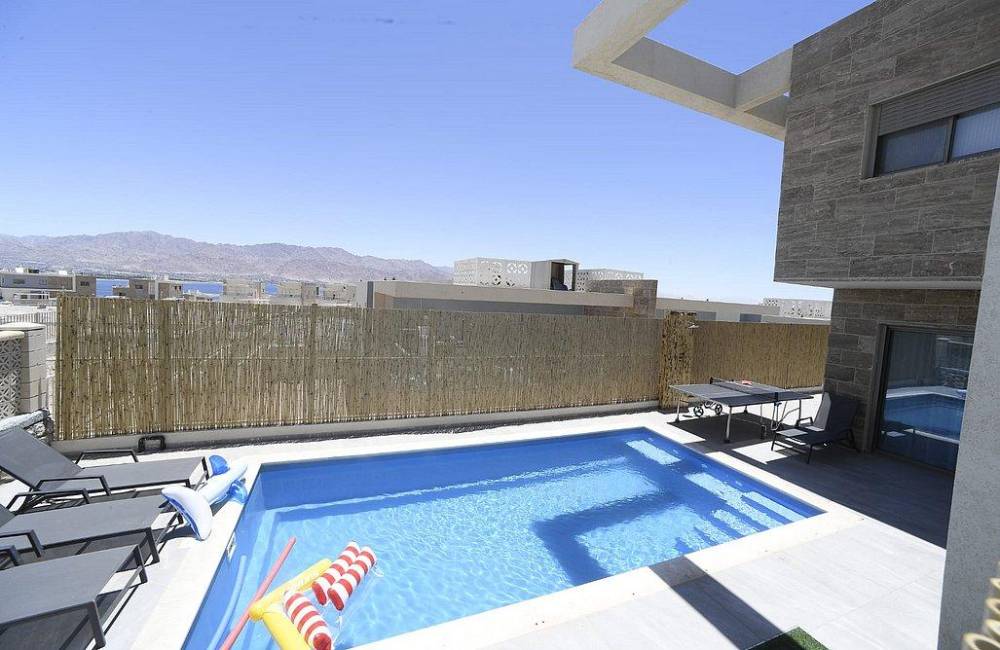 את וילה שירת הים באילת כבר יצא לכם להכיר? אם עדיין לא, זה הזמן לנפוש במקום שכולו חוויה! בוילה מחכים לכם 5 חדרי שינה מעוצבים עם נוף לים, סלון מרווח, מטבח מאובזר, עיצוב מוקפד עד לפרטים הקטנים, בנוסף תהנו ממתחם חיצוני קסום עם בריכת שחייה, שולחן טניס, פינות ישיבה, ברביקיו על גז ותאורה לילית. המקום המושלם לחופשה באילת – אתם מגיעים, ואנחנו דואגים להכל.