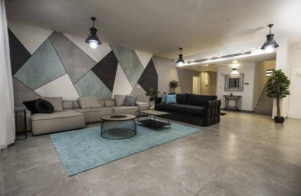 סלון גדול ומרווח עם מערכות ישיבה וטלוויזיה