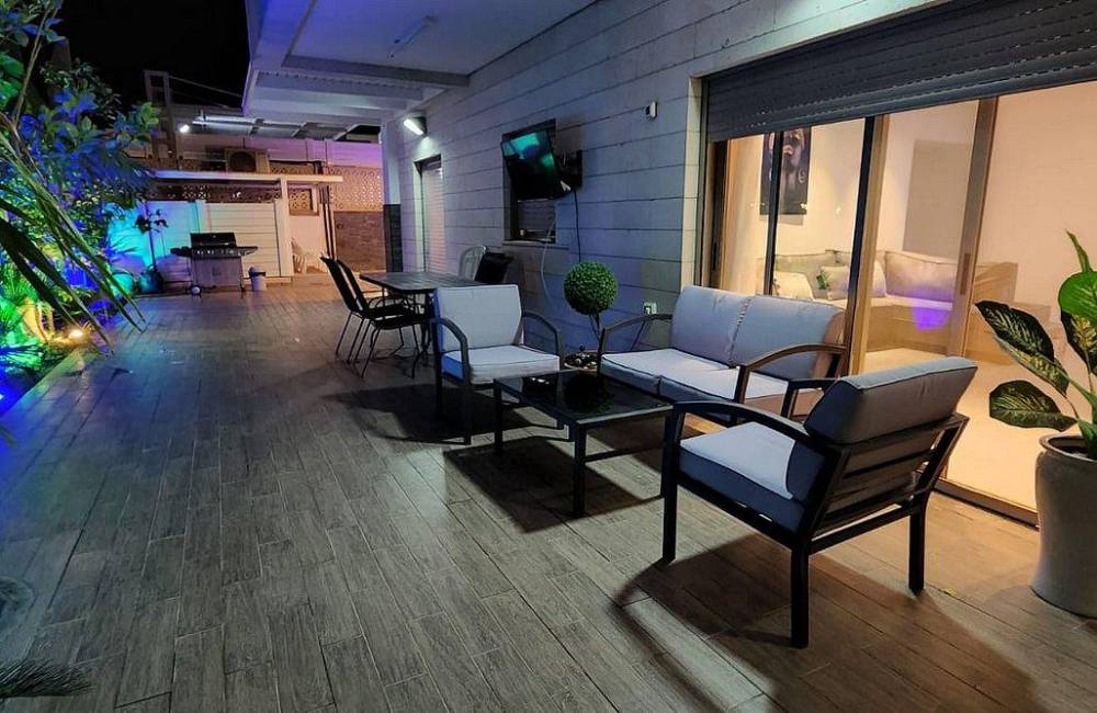 סאן בוטיק דירת נופש ואירוח בעיר אילת, מאובזרת ומעוצבת במודרניות רבה, מונה כ-3 חדרי שינה מפנקים, מטבח מאובזר, סלון רחב ידיים ופינת אוכל. ביציאה לחצר תהנו מריהוט גן הכולל ערסל ישיבה, מיטות שיזוף, פינת אוכל, פינת מנגל על גז ובריכת שחייה מפנקת עם תאורה לילית קסומה לשדרוג החופשה.