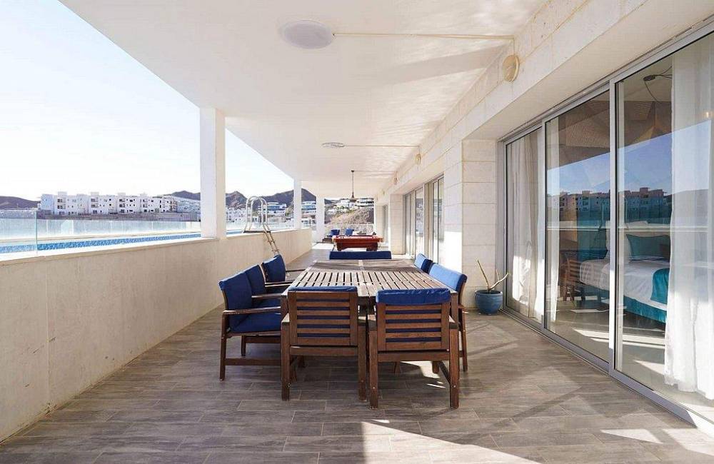מול נוף השמים וחופי הים אנו גאים להציג בפינכם את הפנטהאוז המדהים שלנו מבית Yalarent באילת "פנטהאוז נוף שמיים" פנטהאוז מעוצב ויוקרתי בו תוכלו ליהנות מ-7 חדרי שינה מפנקים בעיצוב מרשים, סלון ומטבח מאובזר, אי לצד המטבח ופינת אוכל. בנוסף קיימת יצאת למרפסת נוף משגעת הכוללת בריכת שחייה גדולה מחוממת בחודשי החורף, פינת BBQ, שולחן סנוקר, ריהוט גן ונוף מדהים אל חופי הים. אם אתם מייחלים לחופשה שיש בה גם פינוק וגם נוף מדהים, מהרו עוד היום לחייג אלינו ולשריין מקום.