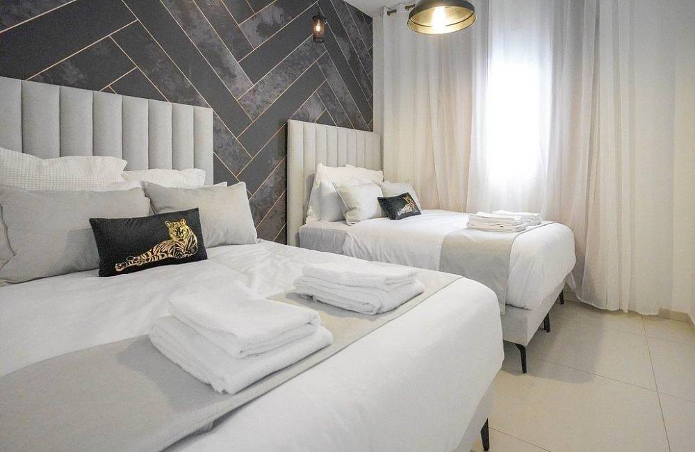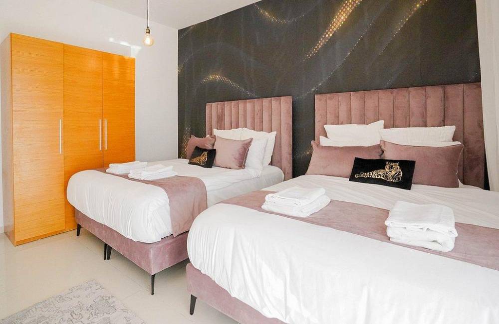 קיימים 3 חדרי שינה עם 2 מיטות זוגיות