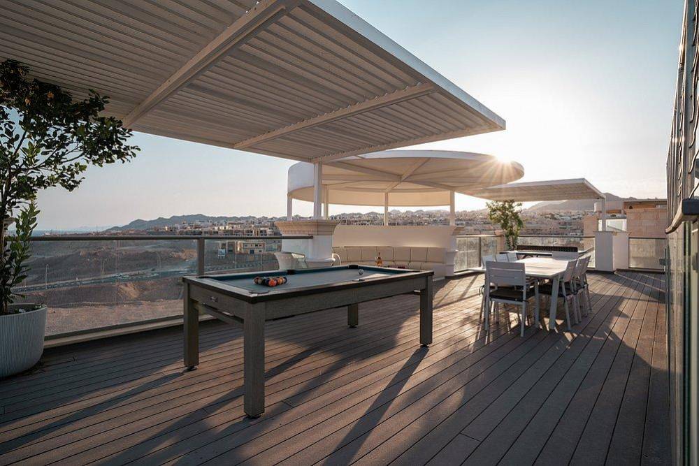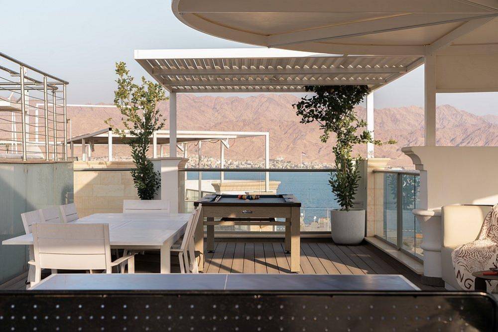 נעים להכיר קווין אן - Queen Anne פנטהאוז יפיפייה ויוקרתי המציע נופים מדהימים מכל פינה בבית, מתאים לחופשה בסטייל על רקע קו החוף של אילת. אצלנו תהנו מ-6 חדרי שינה מפנקים, מטבח מאובזר קומפלט, פינת אוכל רחבת ידיים, פינות ישיבה ויציאה למרפסת שמש קסומה עם בריכת שחייה צלולה, פינת ברביקיו, משחקי שולחן לכל המשפחה, פינת ישיבה מוצלת יוקרתית ונוף משגע