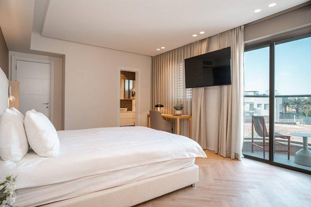 מיטות זוגיות, טלוויזיות שטוחות, ממירים וארונות, כל החדרי השינה מעוצבים בקפידה לרגיעה אולטימטיבית