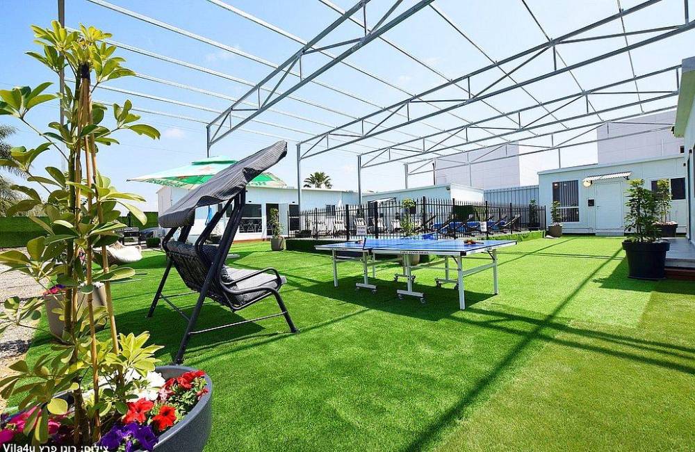 למתחם חצר מפנקת הכוללת בריכת שחייה מגודרת ומחוממת בעונה הקרה, מיטות שיזוף, שולחן פינג פונג, מדשאה, טרמפולינה לילדים, פינת מנגל וריהוט גן. הלינה במתחם קומראן ריזורט מתאימה עד 20 אורחים וקיום אירועי משפחות עד 80 אורחים