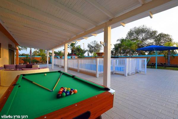 וילה מפוארת הכוללת 5 חדרי שינה יוקרתיים. בוילה תוכלו למצוא: פינות ישיבה מפנקות, מסכי LCD, מטבח מאובזר שלמות וכן חצר מפנקת במיוחד עם שלל אטרקציות: שולחן סנוקר, פינג פונג והוקי אוויר, בריכת שחייה ענקית עם פרטיות מלאה, מתחם ספא חיצוני עם ג'קוזי ספא וסאונה יבשה, פינות ישיבה, BBQ ועוד. הוילה מתאימה למסיבות רווקים/רווקות וכן לחופשות מפנקות במיוחד.