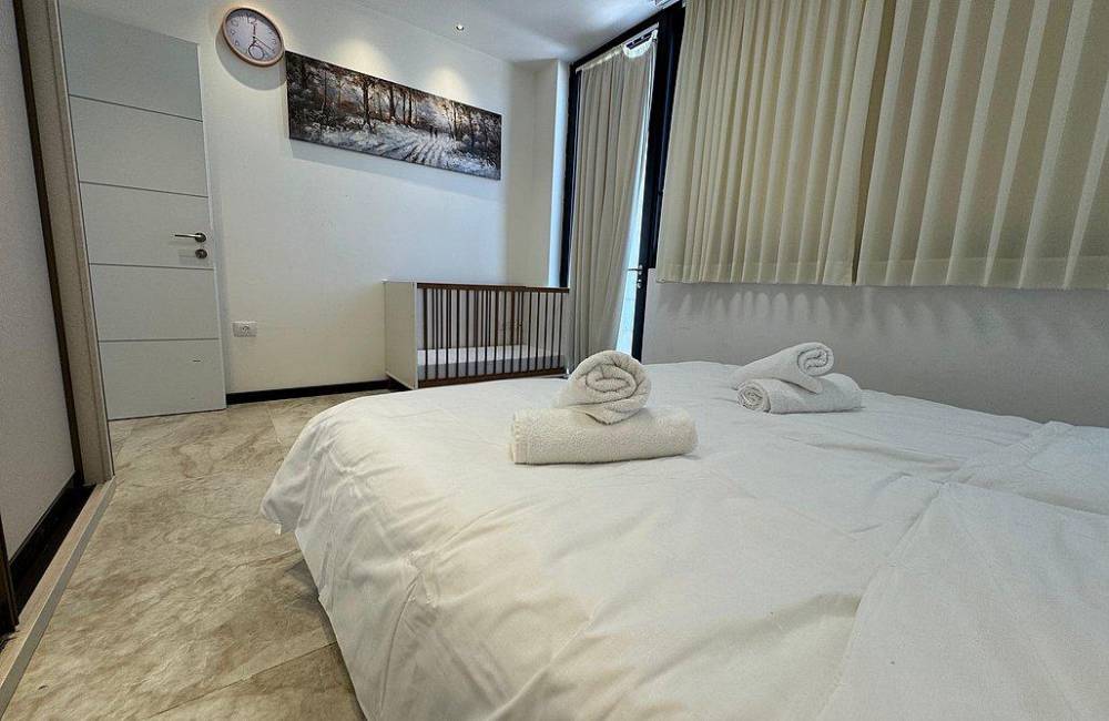 קומה רביעית: 2 חדרי שינה, כל חדר שינה עם מיטה יהודית, מיזוג אוויר, שידות וארונות לאחסון, שירותים ומקלחת משותפים
