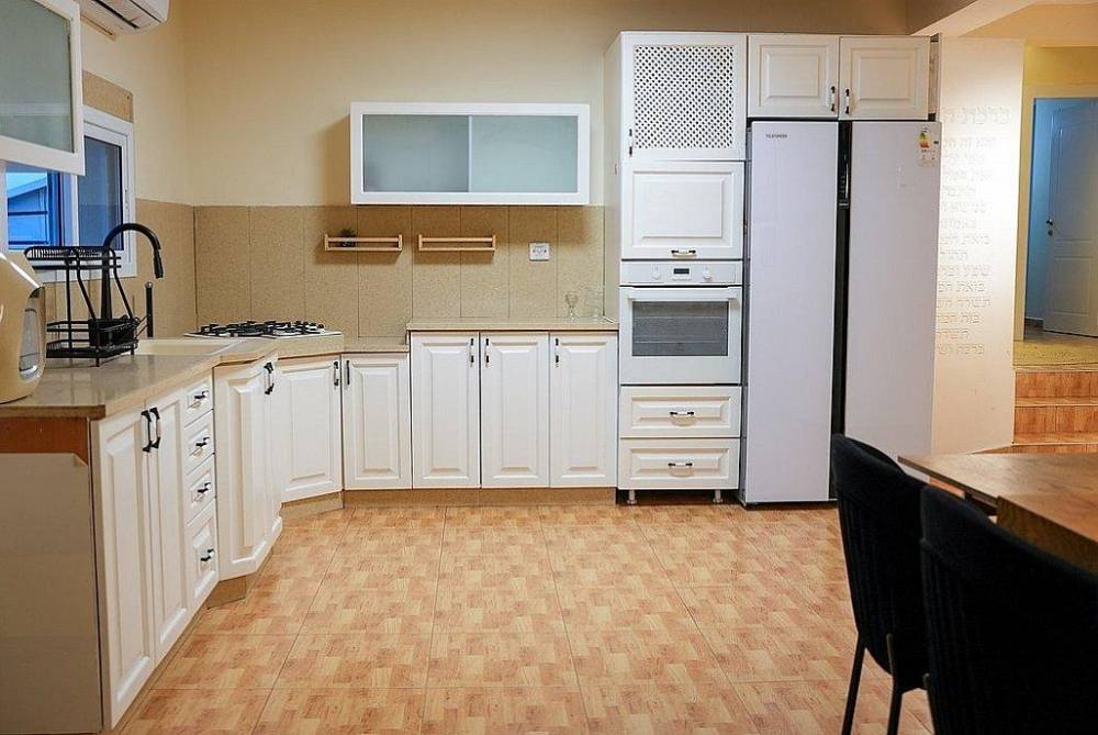 מטבח מאובזר במלואו הכולל: מיחם, פלטה, מקרר, מיקרוגל, כיריים גז, תנור אפייה, כלי אוכל, תמי 4