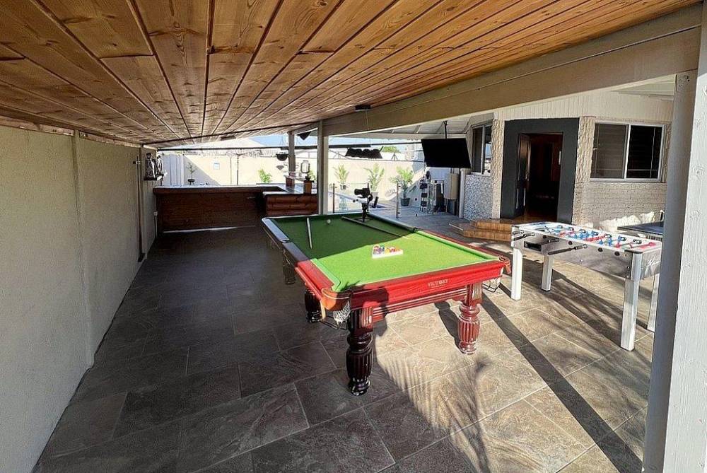 בר עץ על שפת הבריכה הכולל מערכת שמע של ביטי ספיקר