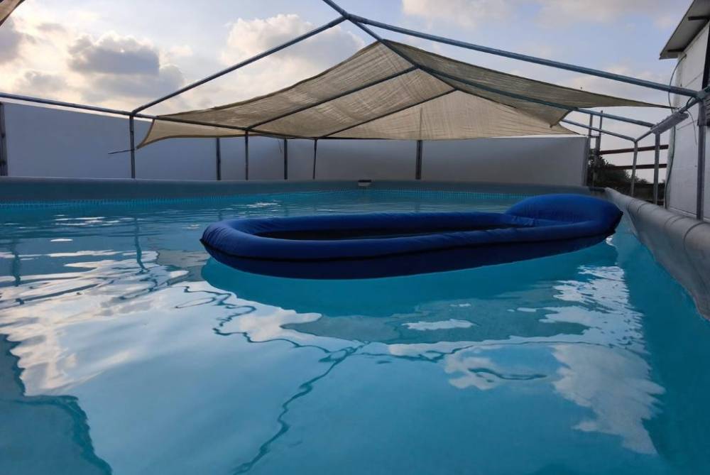 בריכת שחייה ענקית בגודל 8X4 מטר, עומק 1.30, מחוממת ומקורה בעונת החורף