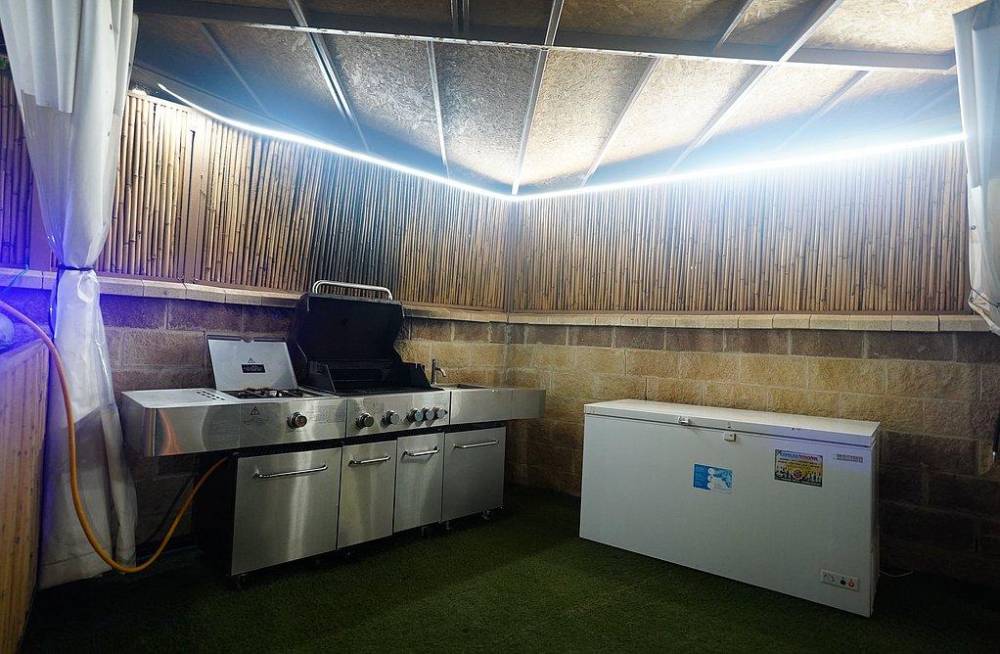 פינת מנגל גז מקצועית (לא בשבת) עם משטח עבודה צמוד ומקרר