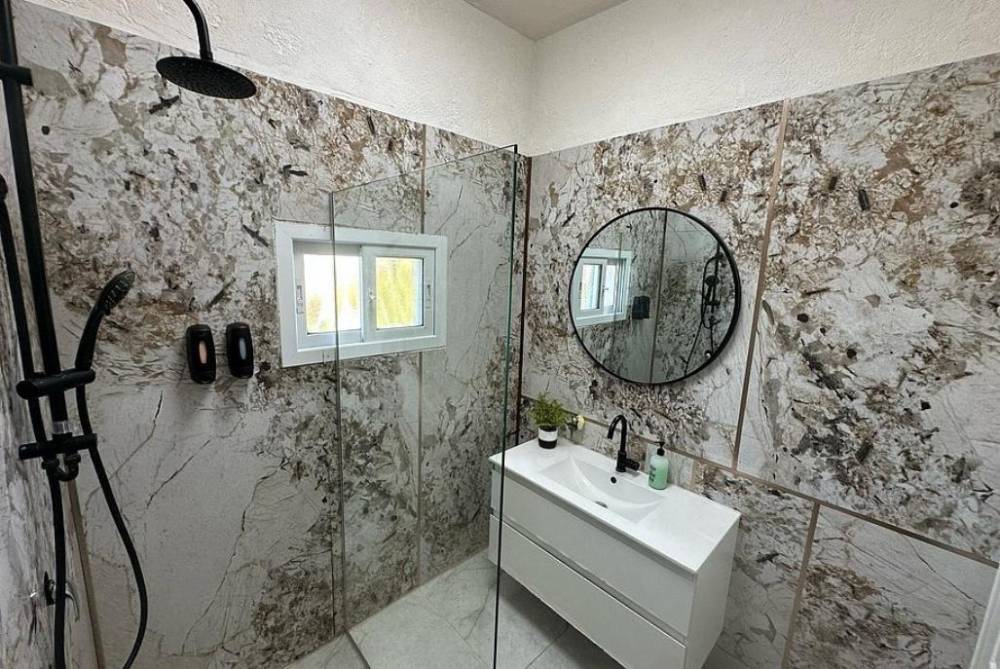 5 חדרי שינה מרווחים, 2 מקלחות ו-3 שירותים. בנוסף קיים שירותים ומקלחון חיצוני.