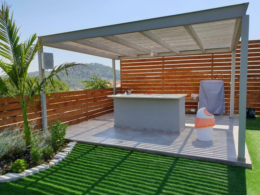 דק עץ עם פרגולה מפוארת