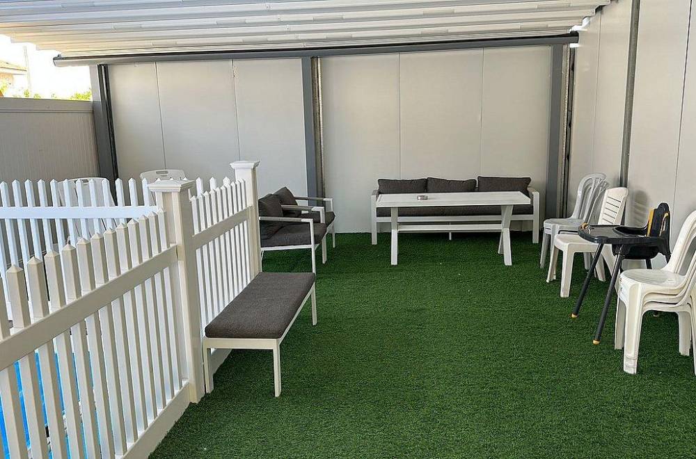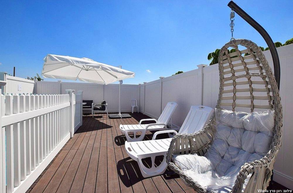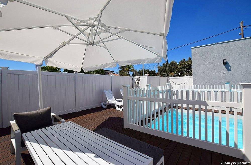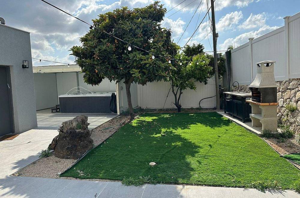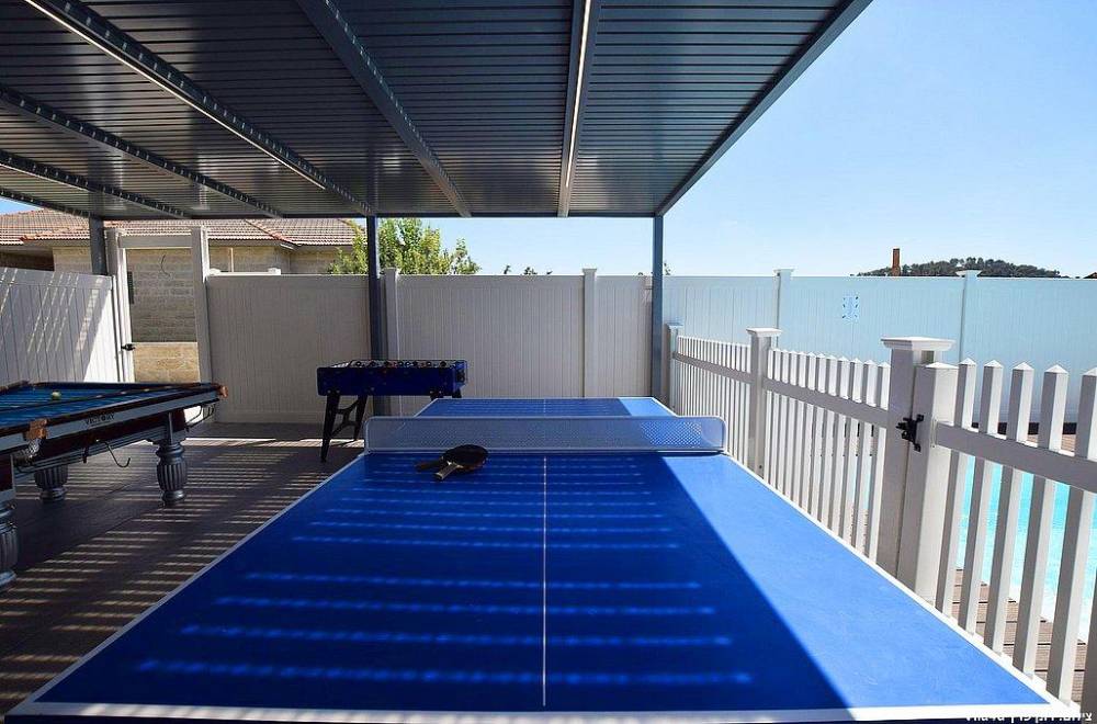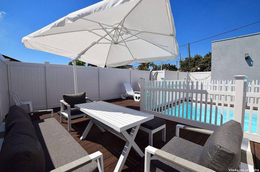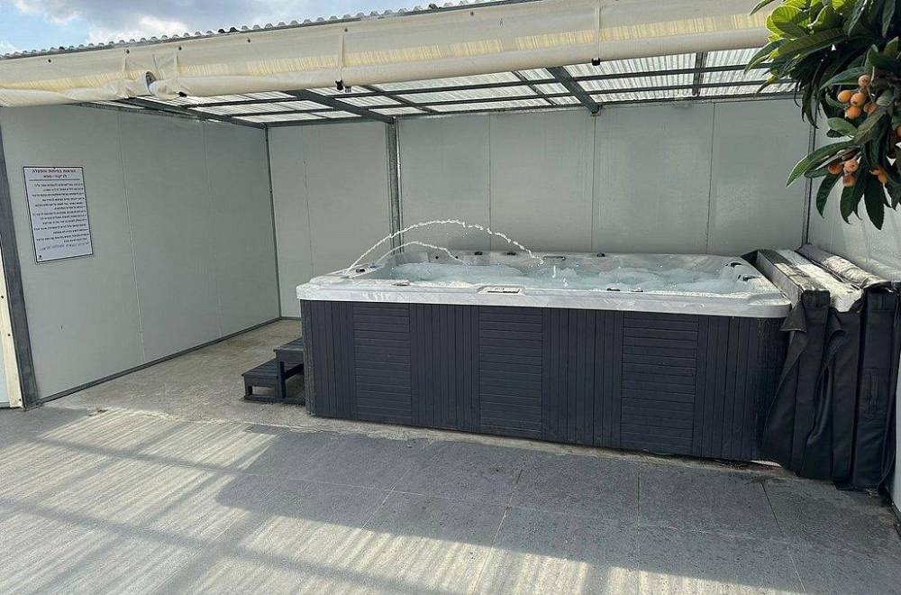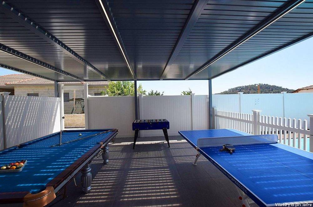 חצר עם ג'קוזי ספא, פינת מנגל, שולחן סנוקר והוקי אוויר