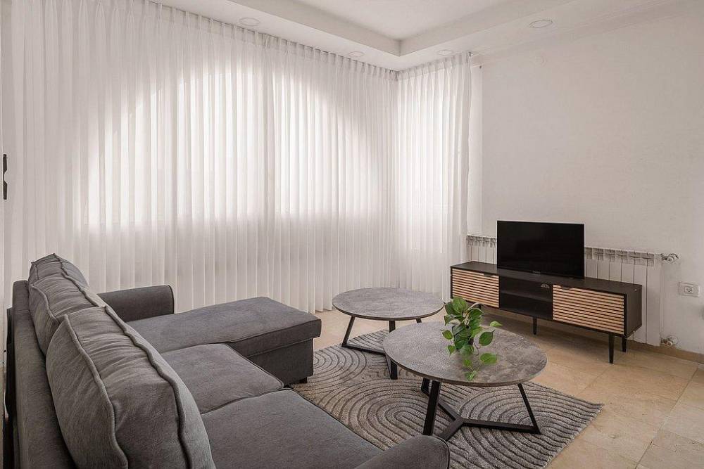 - סלון מרווח עם מערכת ישיבה מפנקת ומסך טלוויזיה