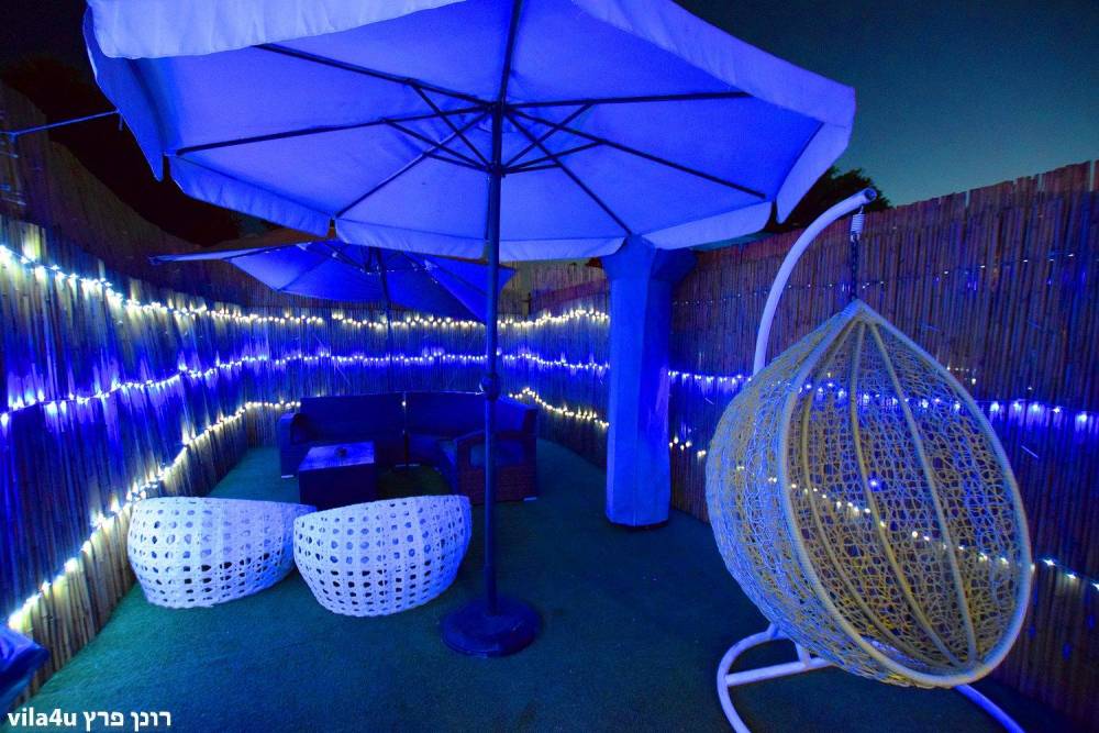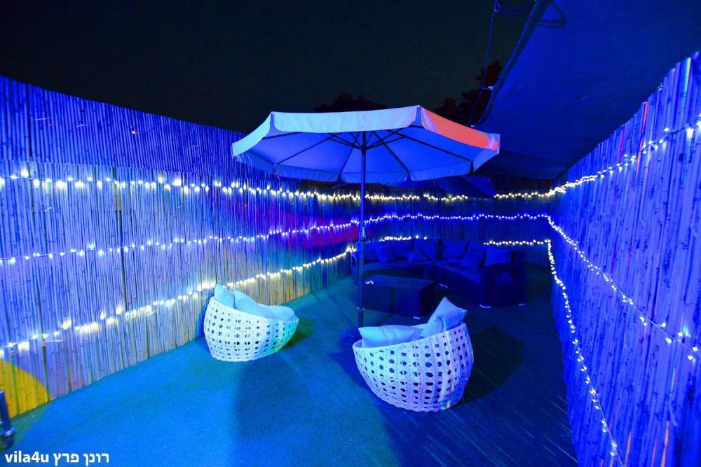 במתחם בריכת שחייה מחופה על רצפת דק, פינות ישיבה, ערסלים ותאורה לילית מדהימה, מערכות ישיבה, מקרן גדול, מערכת הגברה ותאורה מקצועית, ג'קוזי גדול ועוד פינוקים. במיוחד לחורף המתחם סגור ומקורה (הבריכה לא מחוממת)
