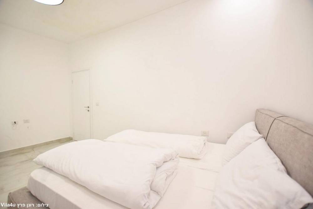 מיטה זוגית יהודית עם תאורת לצד כל מיטה, מזגן, שידות
