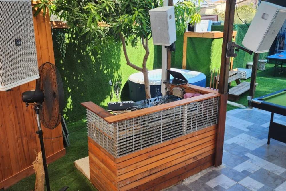 עמדת DJ מקצועית עם מערכת הגברה ותאורה