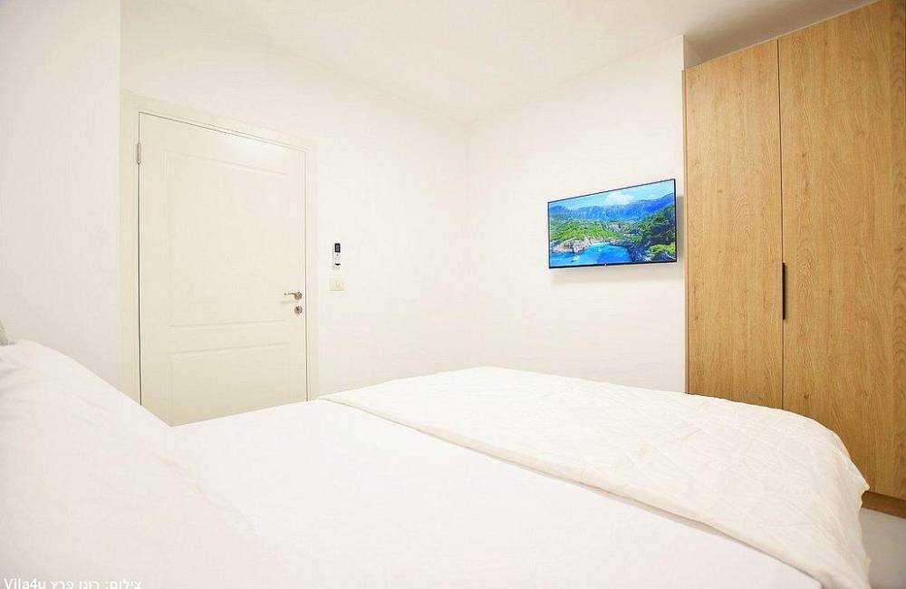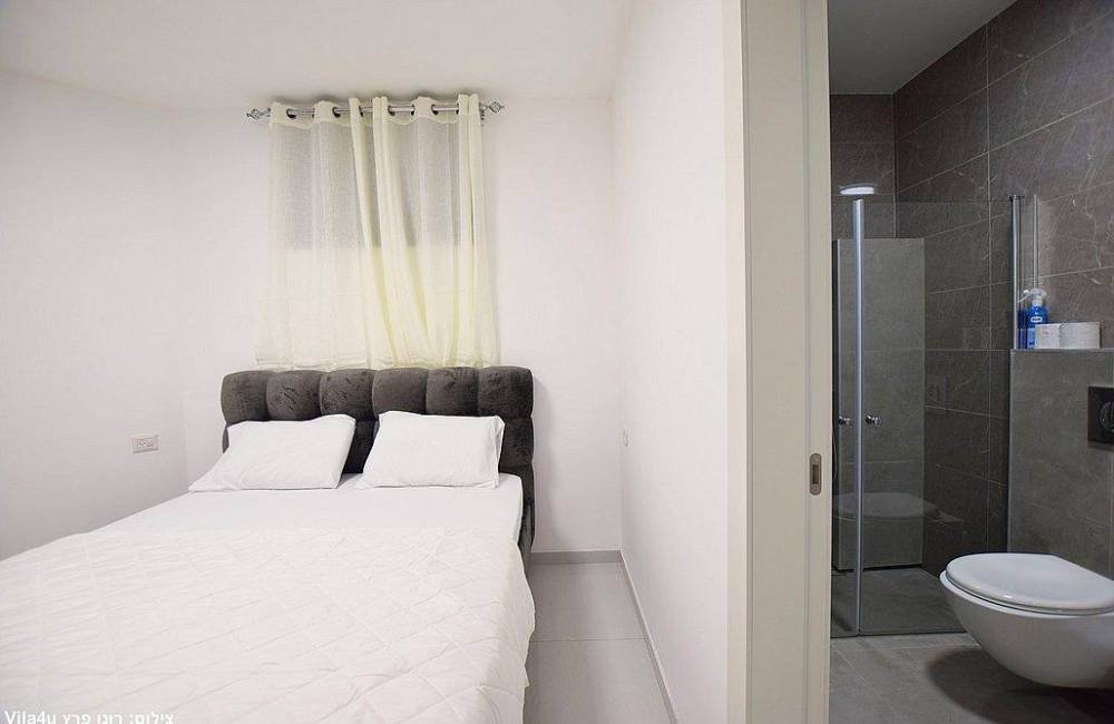 - בכל חדר: מיטה זוגית (מיטות יהודיות), שידה, מזגן, טלוויזיה, ארון. קיים חדר שינה עם חדר רחצה פרטי