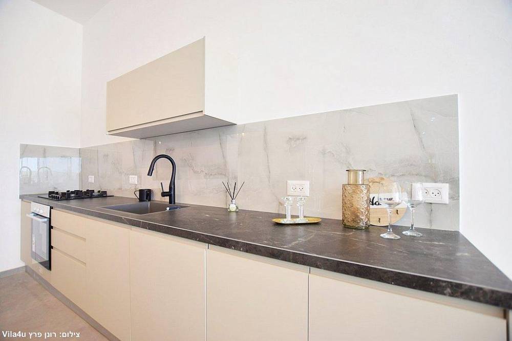 - מטבח מאובזר כולל אי ובו: מקרר, מקפיא, 2 תנורים, כיריים גז, קומקום חשמלי, 2 כיורים מופרדים, פינת קפה ותה, כלי אוכל והגשה, סירים מחבתות ועוד