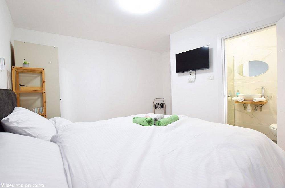 מיטה זוגית (מיטות יהודיות בכל הוילה) מיזוג אוויר, טלוויזיה, ארון או שידה