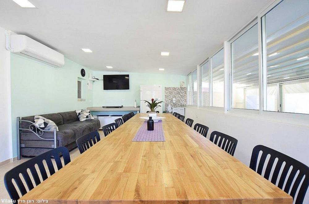 הוילה מושלמת לאירוח עד 13 איש, מונה כ-4 חדרי שינה מפנקים, מטבח מאובזר, חדר אוכל, סלון ויציאה אל מתחם חיצוני רווי בצמחייה ירוקה ועצי נוי, בריכה, משחקי שולחן וריהוט גן