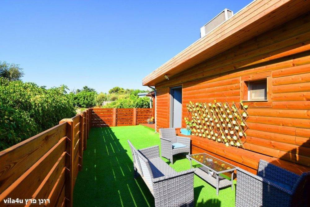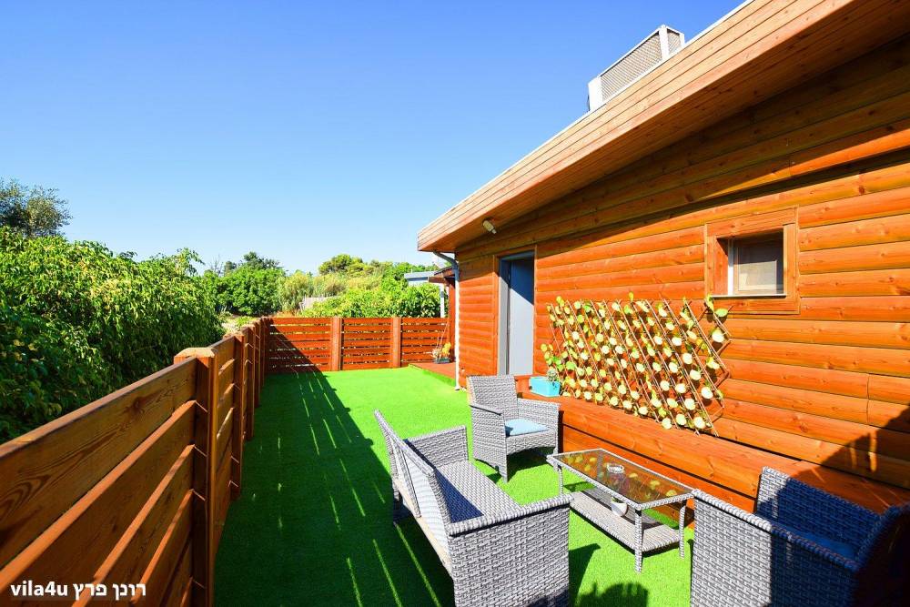 גינה קטנה ופרטית עם פינת ישיבה ומדשאות