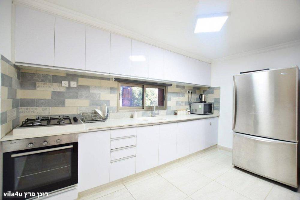 מטבח מאובזר גדול עם תנור אפיה , מקרר, כיריים על גז, קומקום חשמלי, מיקרוגל, כלי אוכל