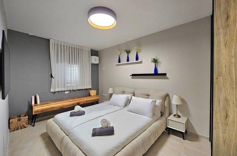 חדר שינה 3 (חדר ממ"ד) - מיטה זוגית בגודל 200X200 מטר, מזרן יחיד, מיזוג אוויר, טלוויזיה ושידות אחסון.